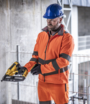 Two layer soft shell. Warm backed polyester soft shell outer layer, made from at least 50% recycled polyester. Conforms to EN ISO 20471: 2013 + A1: 2016 class 3. RIS-3279-TOM (orange only). Showerproof. Full length contrast zip. Two angled ID reflective tape bands around the body, sleeves and one on each shoulder. Two front zip pockets. Open cuffs and hem. Branded tab on lower left side seam.