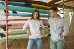 Our finest hoody in an organic cotton and recycled polyester blend. Two front pockets with YKK zippers. Hood drawstring with metal endings and a decorative flatlock seam for a contemporary look. CVC French Terry, herringbone neck tape and rib at bottom sleeve and hem. Elastic rib 1 x 1. Comes with ear phone solutions.